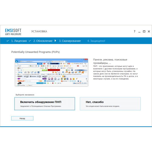 Веб-захист. Якщо Ви випадково намагаєтеся зайти на веб-сайт, який відомий поширенням троянів, шпигунів і будь-яких інших шкідливих програм, то Emsisoft Anti-Malware зупинить подібне підключення і зараження.