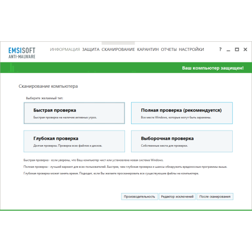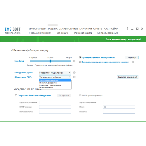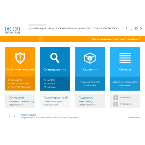 Emsisoft Anti-Malware - потужний багатоядерний антивірус і антишпигун, що захищає комп'ютер від різних видів шкідливого ПЗ. Контроль програм блокує будь-які шкідливі дії, веб-захист зупиняє інтернет-загрози, коли ви перебуваєте онлайн.