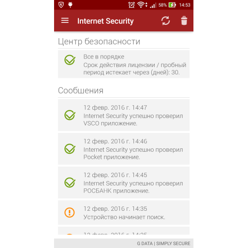 G Data MobileSecurity 2 надійно захищає від шкідливих програм, а також забезпечує надійний захист при серфінгу в Інтернеті зі смартфона або планшетного ПК. Крім того, можна блокувати докучливі вхідні дзвінки та повідомлення. Список контактів і пов'язані з ним виклики і повідомлення можна захистити за допомогою пароля. Ті, хто використовує мобільний пристрій не тільки в особистих, а й в робочих цілях, можуть додатково захистити ділові контакти.