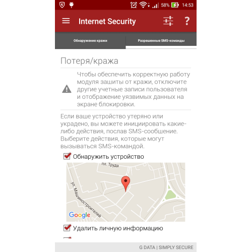 Смартфон або планшетний ПК можна захистити від наслідків втрати або крадіжки: пристрій можна знайти віддаленим способом, а також віддалено стерти інформацію у пристрої, щоб сторонні не змогли нею скористатися. Таким чином, забезпечується оптимальний захист мобільного пристрою.