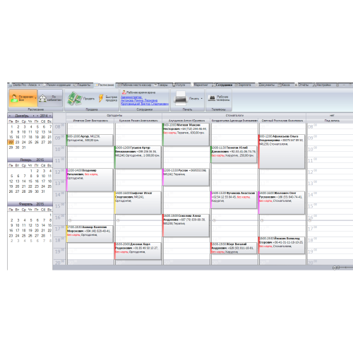 В разделе расписание программы Denta Pro администратор или сам врач формирует запись, производит расчет клиента, контролирует загруженность клиники и распределяет записи по врачам.