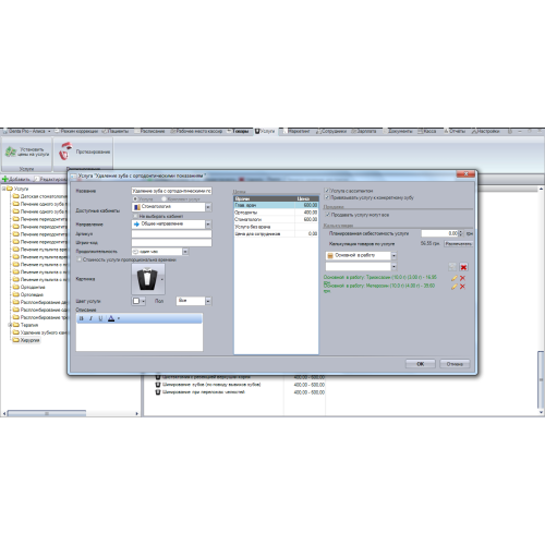 В разделе Услуги программы Denta Pro предусмотрен каталог с предоставляемыми услугами.