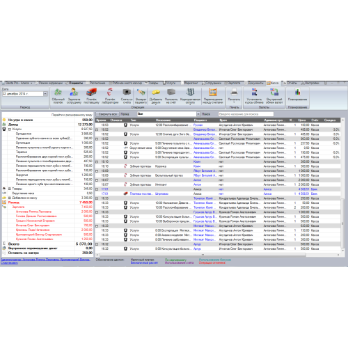 Для того, что бы Вы в любой момент могли отследить все денежные операции по клинике в программе предусмотрен раздел "Касса". Здесь Вы увидите:
