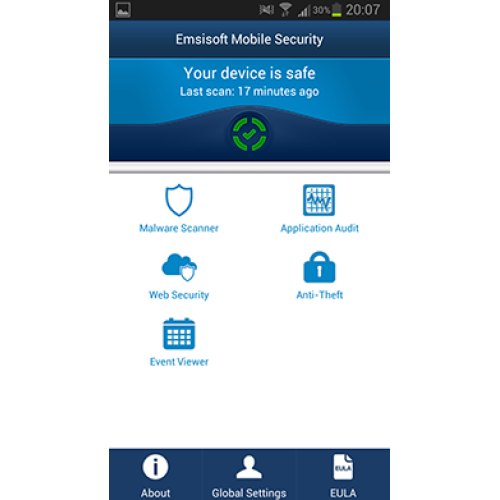 Emsisoft Mobile Security є рішенням для забезпечення безпеки платформи Android, з дуже низьким впливом на систему і рівень заряду батареї, забезпечуючи доступ до ряду функцій безпеки.